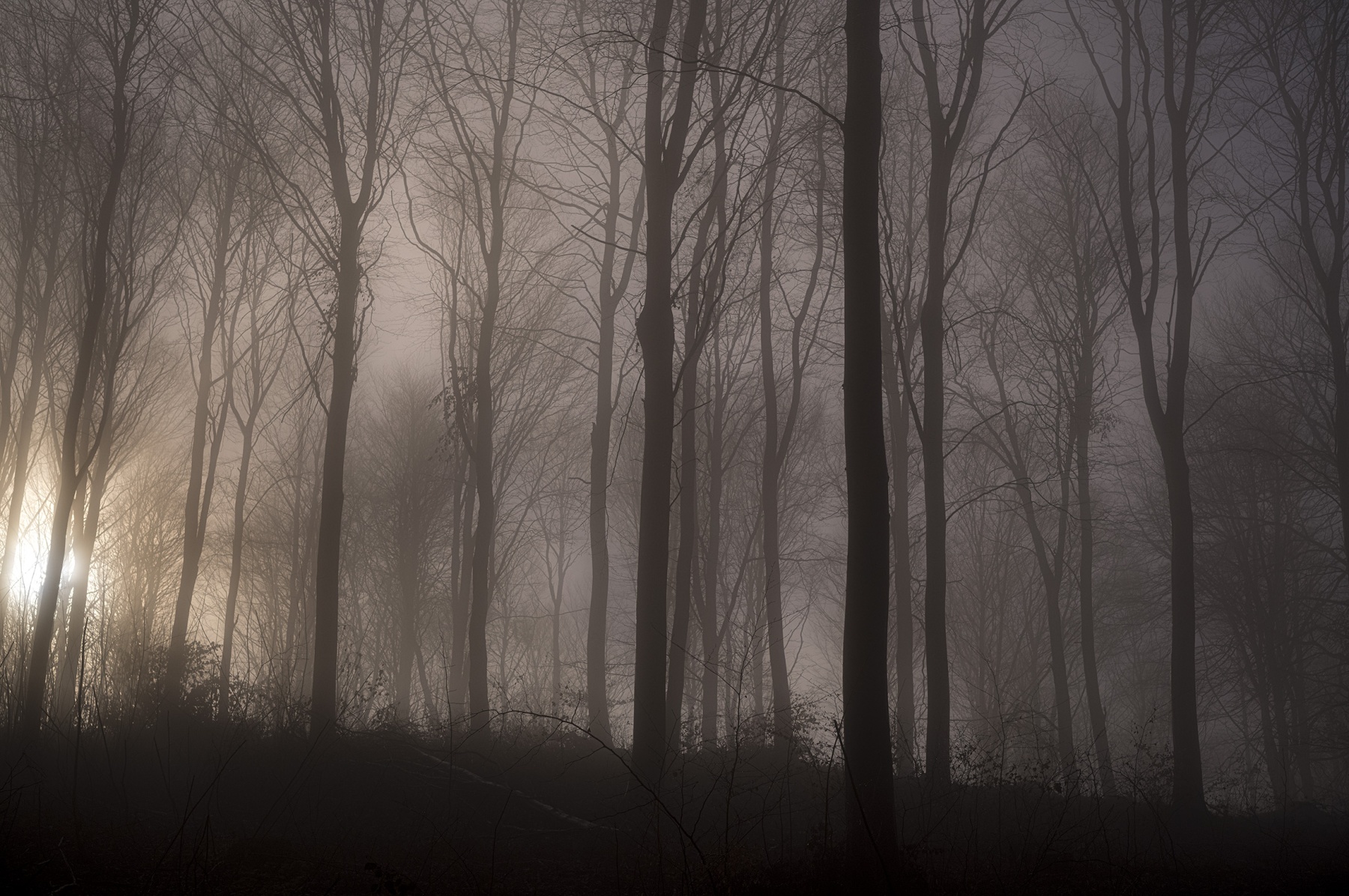 Det vi ikke kan se, det det bliver masket væk af tågen bliver overladt til fantasien. Står der et dyr inde i tågen ? eller et menneske ?? eller måske en skovtrold ???